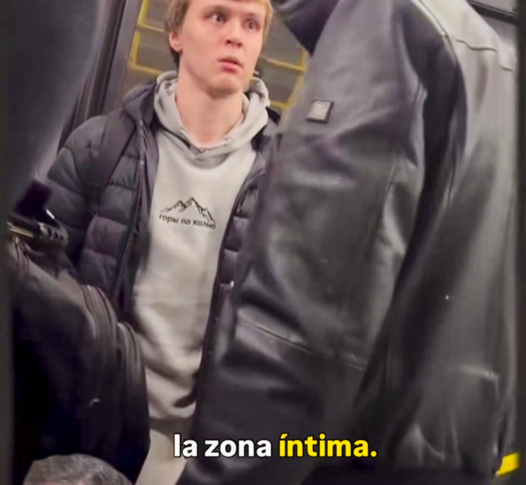 En este otro caso, un jovencísimo pasajero decidió que el ataque que iba a sufrir era inminente y no lo perdió de vista. Enseguida optó por adelantarse él mismo y noquear a su adversario con un «uno-dos» buenísimo que lo mandó a la lona del metro. El personaje en cuestión no dejaba de agobiar al chaval y todo el mundo nos alegramos mucho del felices enlace porque estaba claro además que iba a terminar golpeando al chico, que estaba clarísimo que no estaba haciendo nada irregular.