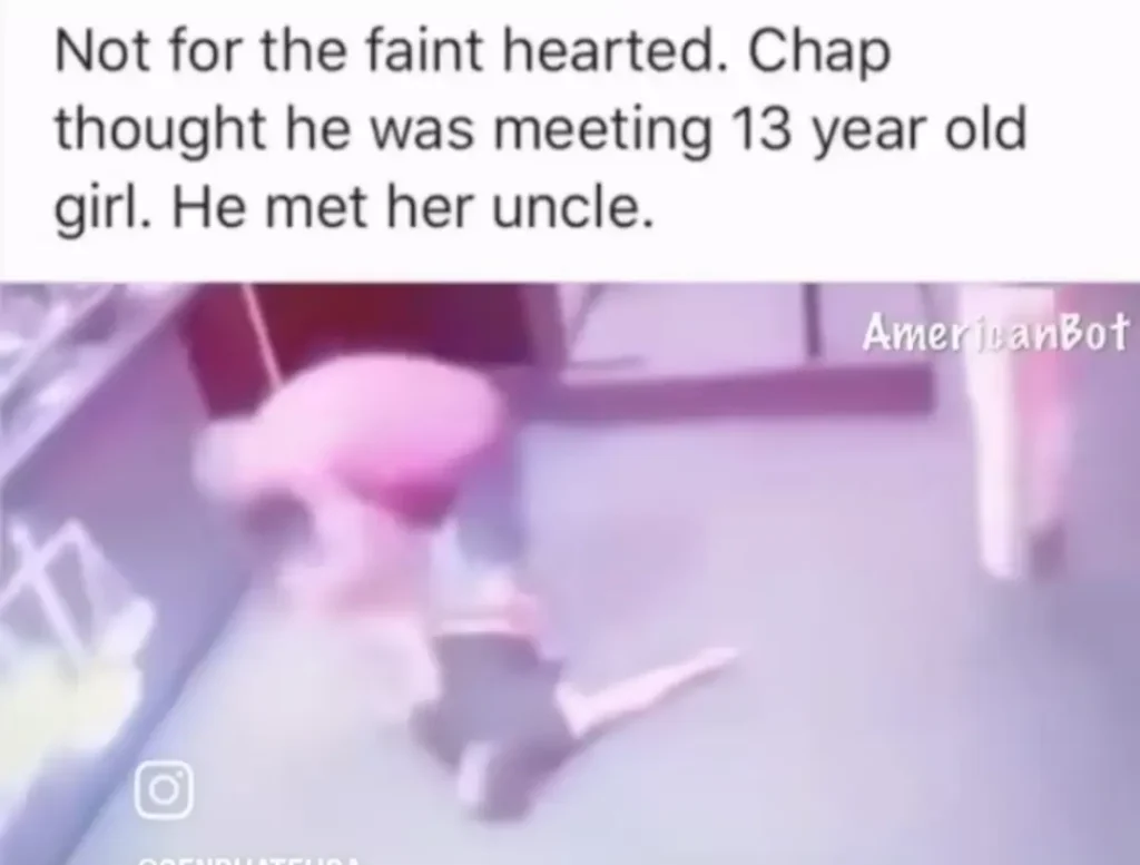Resulta que un tipo tuvo la ocurrencia de ponerse ligar con una cría de 13 años y cuando fue a quedar con ella el que apareció por allí fue su tío, quien demostró ser bastante desenvuelto en el tema de la lucha, porque le propinó una paliza que lo dejó KO antes de proceder a romperle, con precisión quirúrgica, los dos brazos. Y sólo entonces se marchó por donde había venido, dejando a ese pobre hombre un recuerdo inolvidable de lo que te puede suceder si te dedicas a hacer estas cosas.