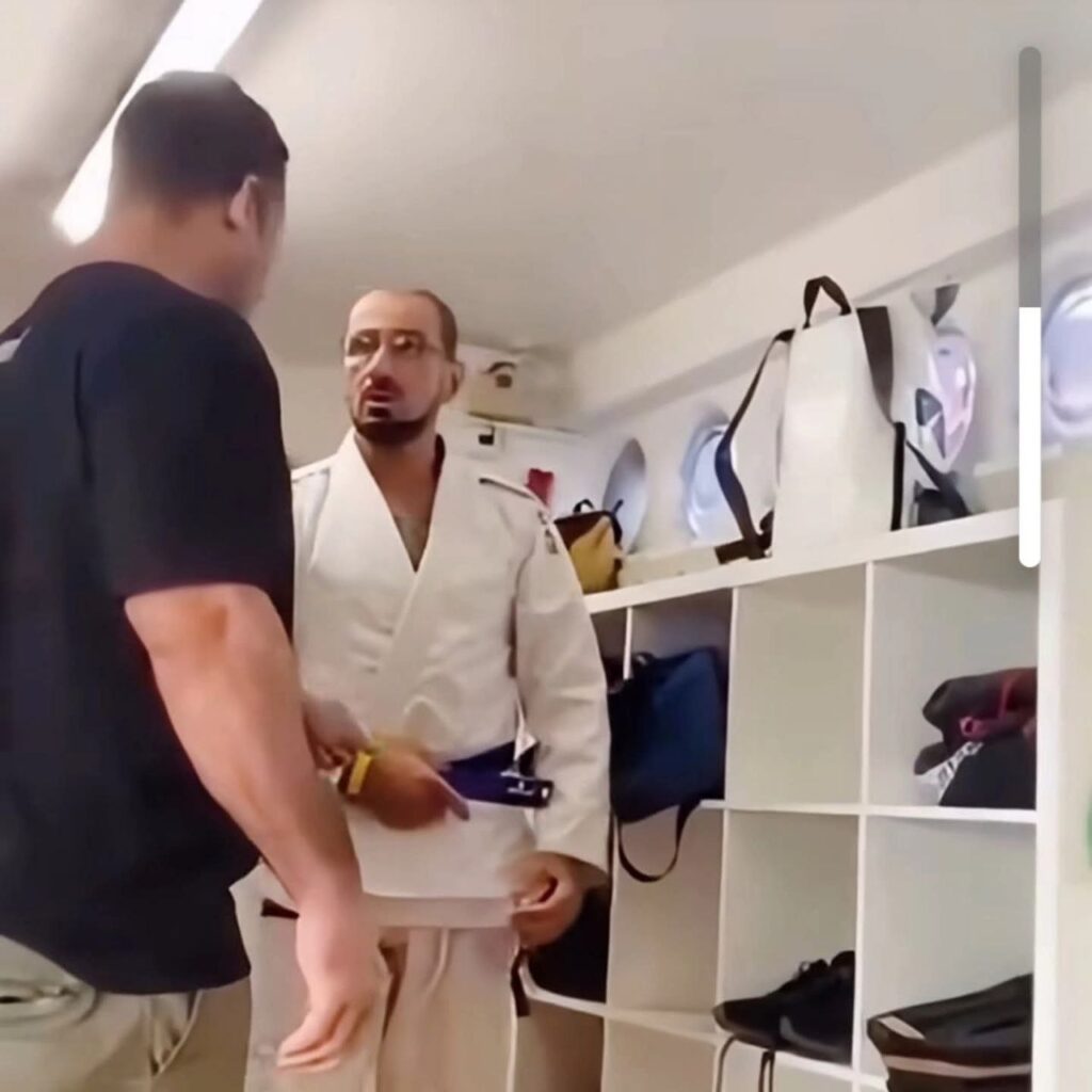 Esto parece un chiste, pero dicen que ocurrió de verdad en una academia. Un profesor corre a un nuevo estudiante. Al parecer, el de kimono blanco se hizo pasar por cinturón azul. Subió una foto al lado de profesor, como pretendiendo parecer que «sí lo hubiera graduado». Pero el antiguo profesor se comunicó con ese entrenador y le dijo que el tipo era principiante.