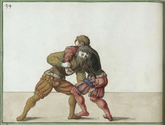 En aquella época, el grappling —conocido como Ringen en alemán— era un componente esencial del combate. Servía para dominar, desarmar o neutralizar al enemigo cuando la espada ya no era útil. Algunas ilustraciones de más de cinco siglos muestran a hombres practicando proyecciones, agarres y transiciones con armas, bajo la mirada simbólica de la Muerte representada en algunas de las figuras que los observan.
