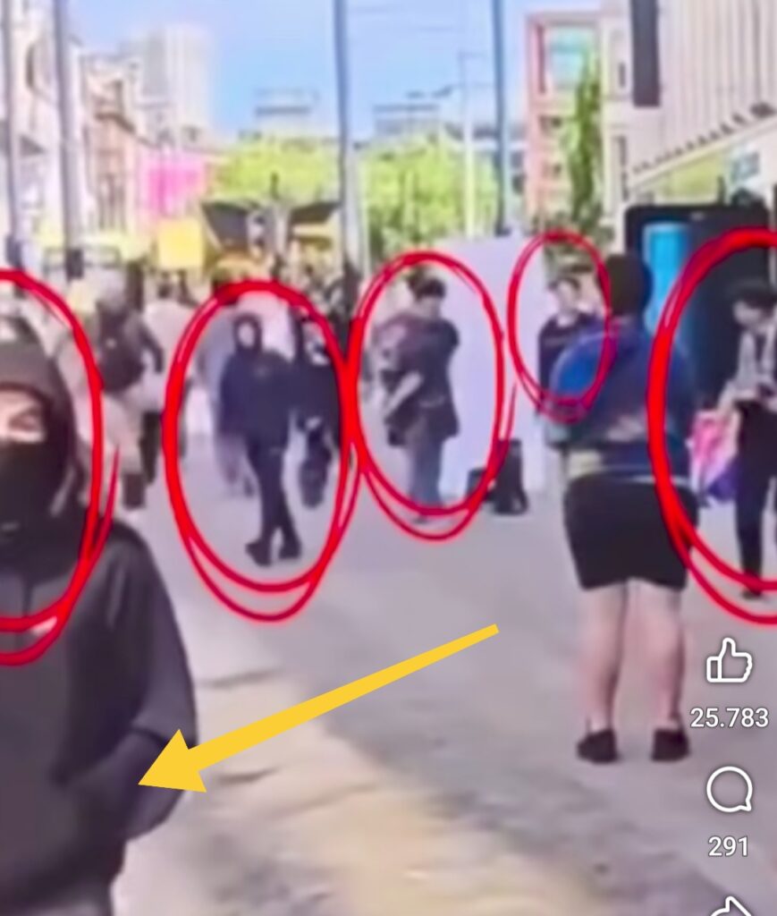 En la imagen, varios individuos están actuando de forma coordinada y seguramente algunos de ellos van armados con algo.