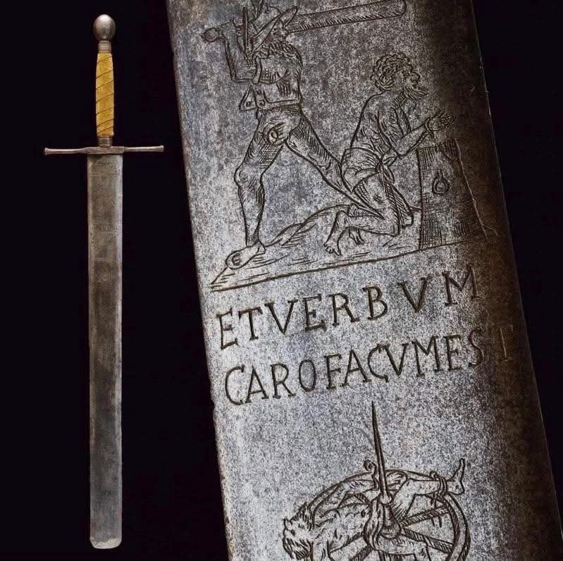 Espada de verdugo alemana de 1613 con la inscripción “Y el Verbo se hizo carne”.