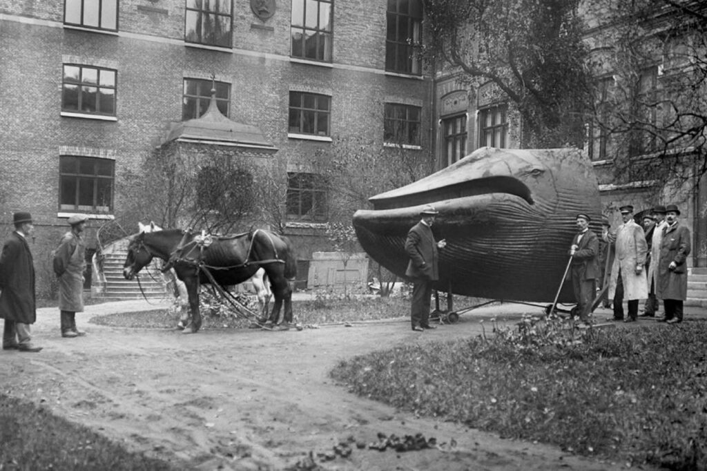 La Ballena Malm siendo trasladada desde Ostindiska Huset a sus nuevas instalaciones en el Museo de Historia Natural en Slottsskogen, 1 de noviembre de 1918. Fotografías de Elisabet Petersson.
