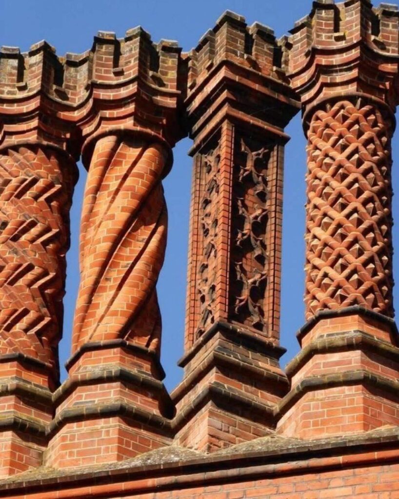 Chimeneas ornamentales de la época Tudor en Gran Bretaña. Estamos hablando de la época previa a la era victoriana, cuando empezaba el verdadero imperio británico que luego se extendió por todo el mundo. La época de Felipe II en España.