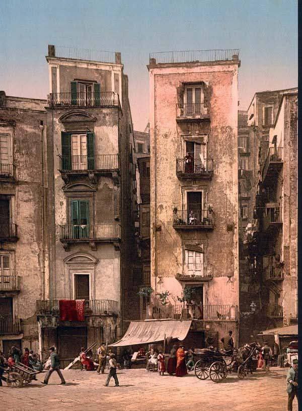 Calles estrechas en Nápoles, Italia, en los años 1890.