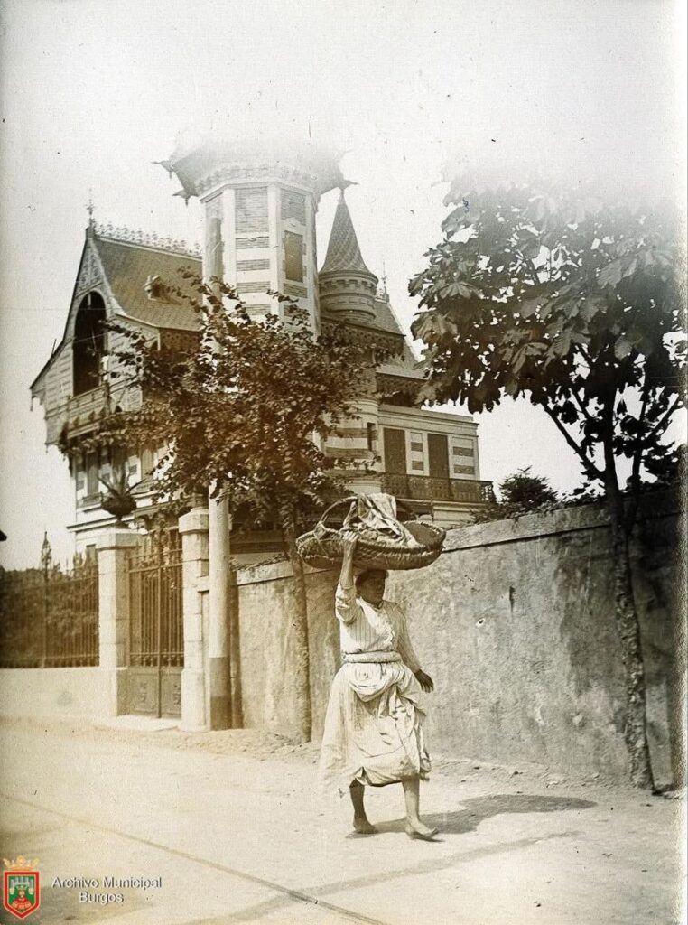 Santurce: una sardinera con una cesta en la cabeza va camino hacia Portugalete. La fecha es del 13/09/1896. Col. Cortés / Archivo Municipal de Burgos.