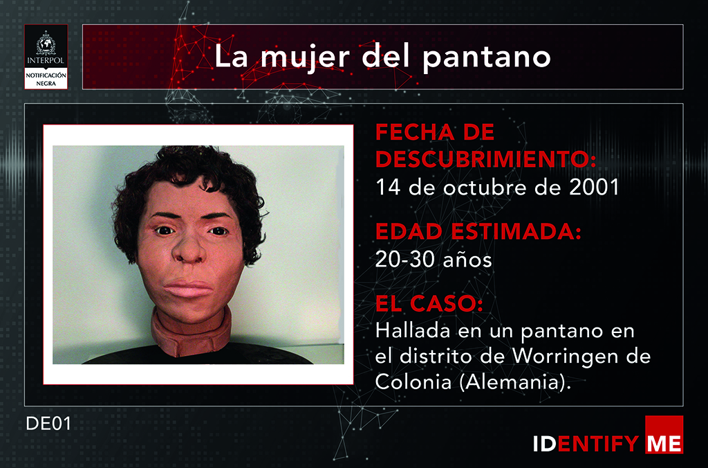 Este caso forma parte de la campaña Identify Me (Identifícame), impulsada por Interpol, cuyo objetivo es reconocer la identidad de mujeres fallecidas cuyos cuerpos fueron encontrados en seis países europeos: Bélgica, Francia, Alemania, Italia, Países Bajos y España. Desgraciadamente, la lista es larga y te deja mal cuerpo: ¿cómo es posible que estos seres humanos no hayan sido extrañados por nadie y no se puedan identificar, ni siquiera después de haber sido asesinados, en muchos de los casos?