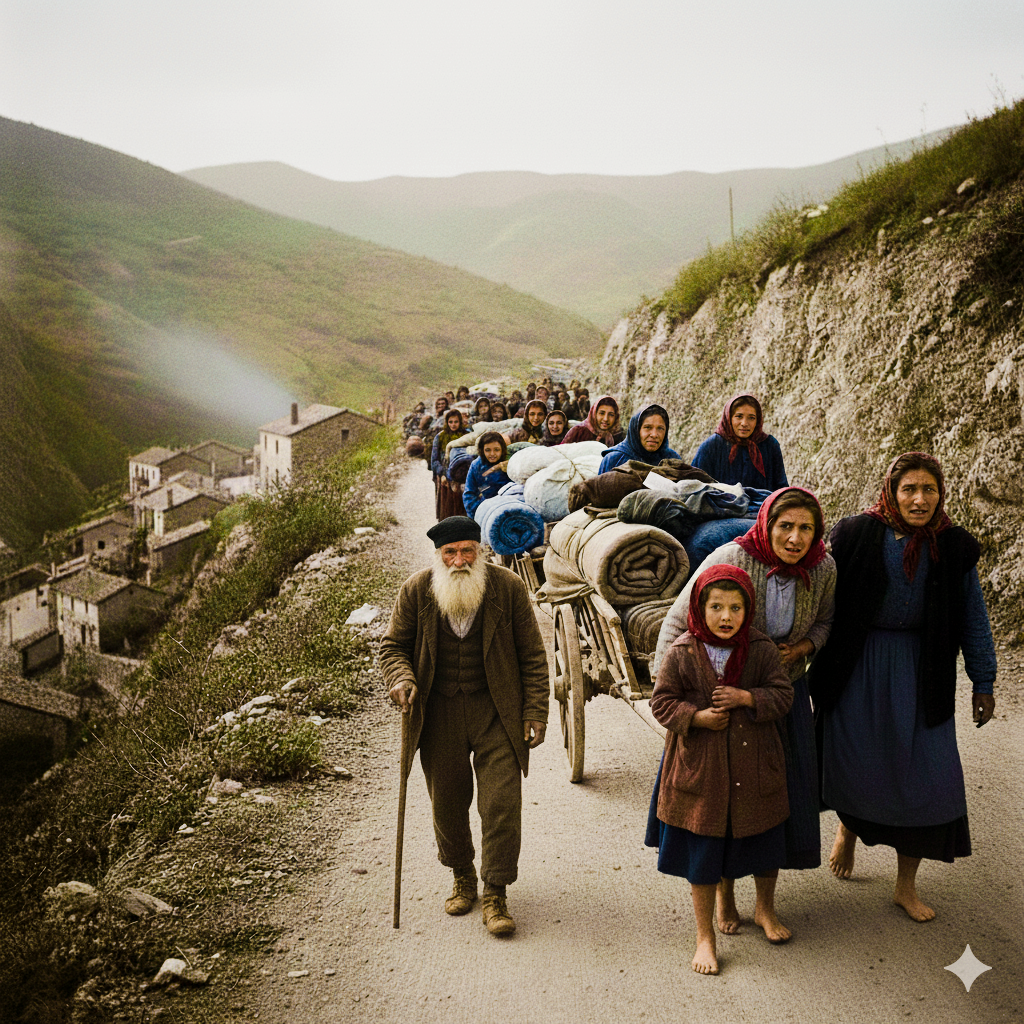 Una de las dudas que me quedan sobre el maravilloso y heroico comportamiento de las fuerzas nacionales es el por qué no evacuar una frontera tan disputada. Porque mantener a la población civil en el mismo sitio donde tienes destacamentos armados porque sabes que te van a atacar en cualquier momento para mí no tiene sentido, aunque supongo que estos sufridos habitantes de la Montaña preferían lo malo conocido en su terruño que lo bueno conocer en quién sabe dónde. De hecho, las tropas nacionales los evacuaron cuando no podían siquiera intentar protegerlos, mientras que las huidas de la población civil aterrorizada se producían cuando los bárbaros atacantes se dedicaban a hacer de las suyas en sus propios pueblos.