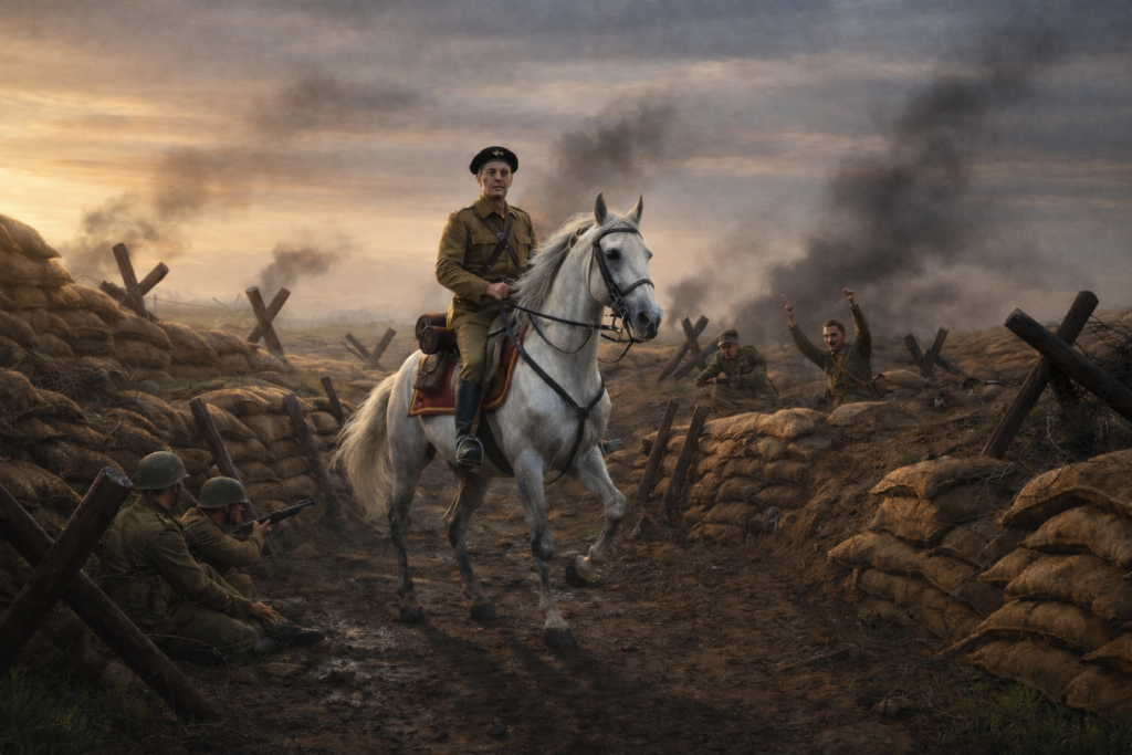 A los defensores les dio mucho ánimo el ver el caballo blanco de su general a lo lejos