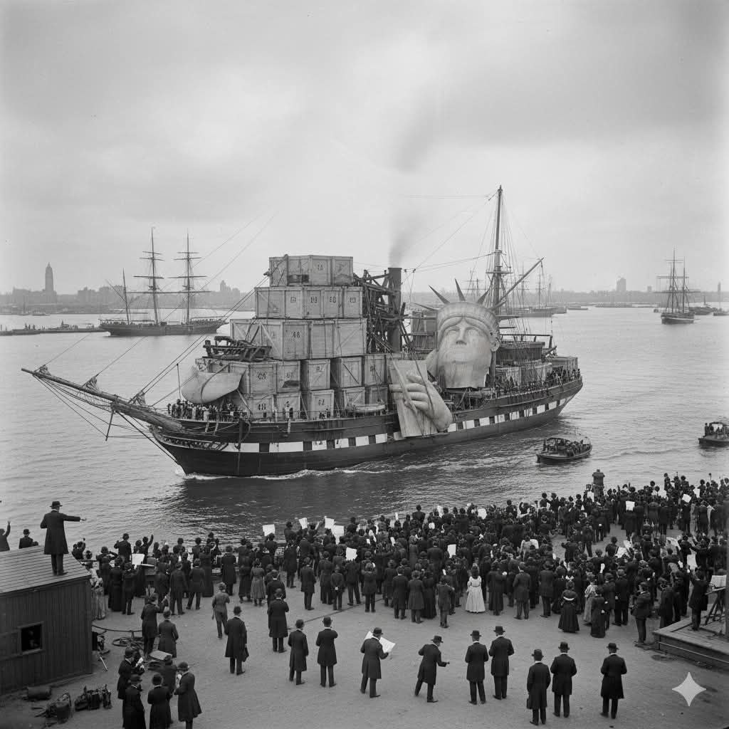 En el verano de 1885, el puerto de Nueva York fue testigo de un acontecimiento único: el desembarco de 214 cajas de madera que contenían más de 350 fragmentos de cobre y hierro. Aquellas piezas no correspondían a un cargamento ordinario, sino al obsequio que Francia había preparado para Estados Unidos: la futura Estatua de la Libertad. Cada elemento estaba cuidadosamente numerado y acompañado de planos detallados, elaborados por el ingeniero Gustave Eiffel, con el fin de que en América pudiera reconstruirse el monumento como si se tratase de un gigantesco rompecabezas.