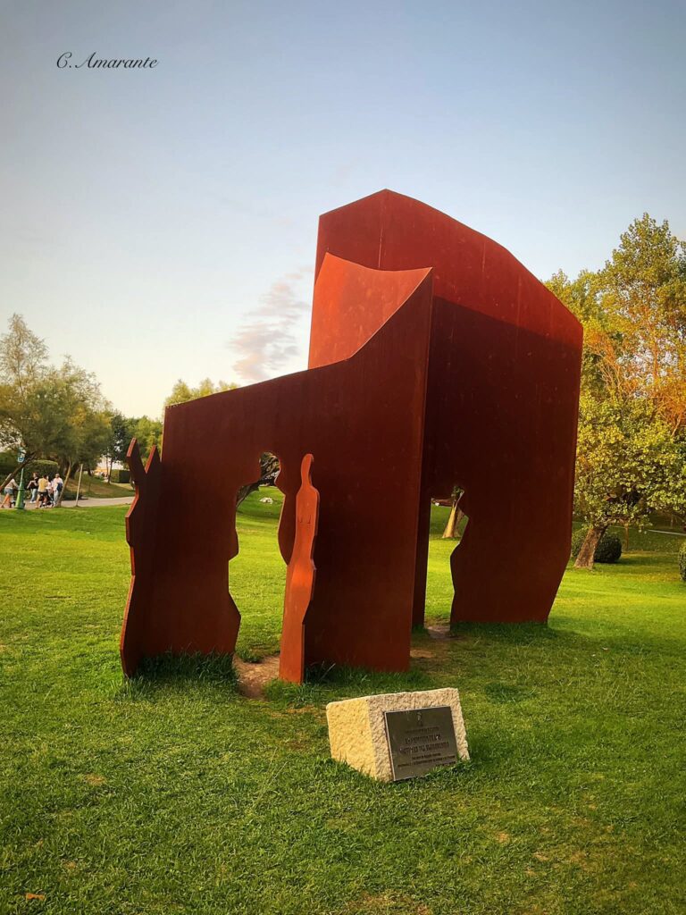 Esta auténtica birria de escultura es horrible por sí misma y no hace falta ni describirla. Una cosa que es fea incluso para los estándares de Santander, donde no faltan monumentos horribles y en especial los dedicados a las víctimas del terrorismo, que son especialmente penosos porque a nadie se le ocurre que ese óxido tan feo puede resultar estético en ningún momento.